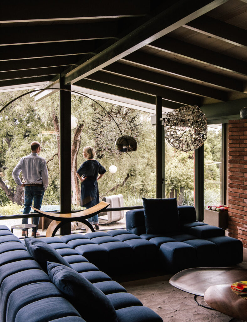 Set apart from and overlooking the landscape, the original house, designed by Calvin Straub, consists of four distinct wings that converged at a closed-in kitchen.